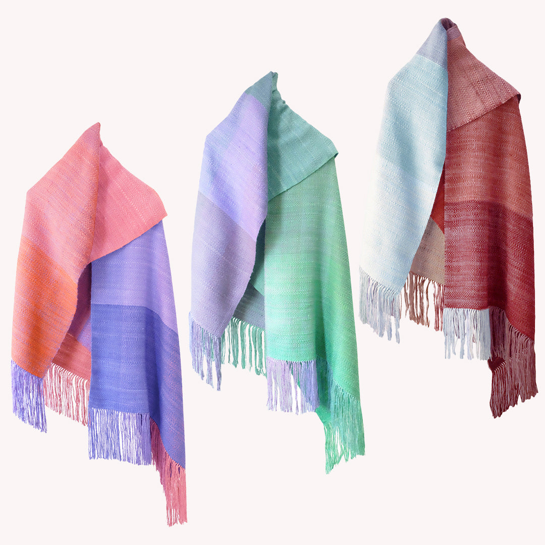 そして、このショールは手織り(高機)で丁寧に織られており、それは織り上がった布の風合いの良さに現れています。