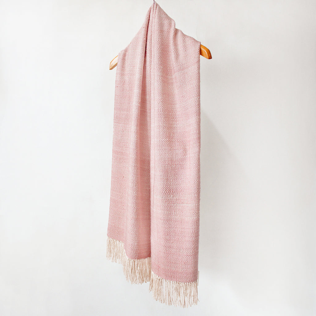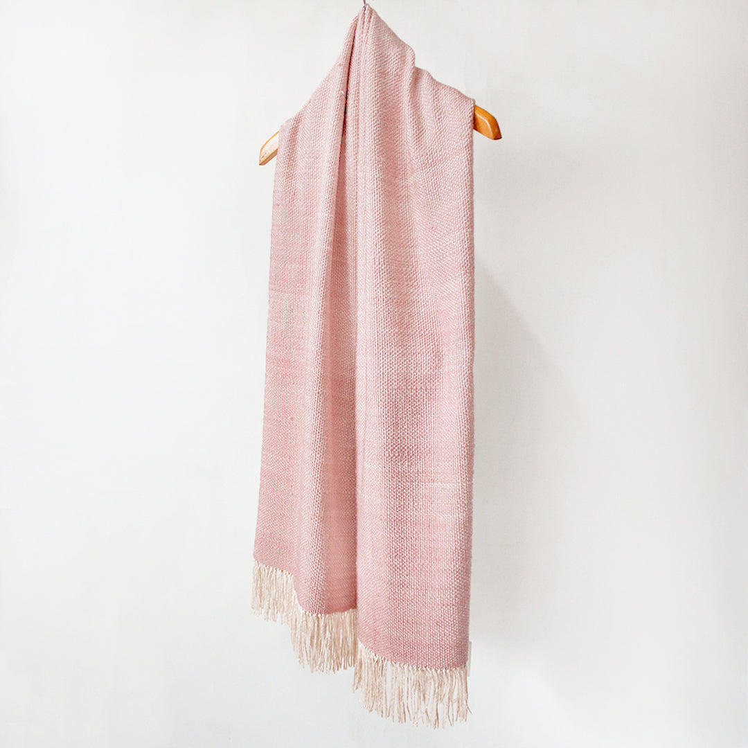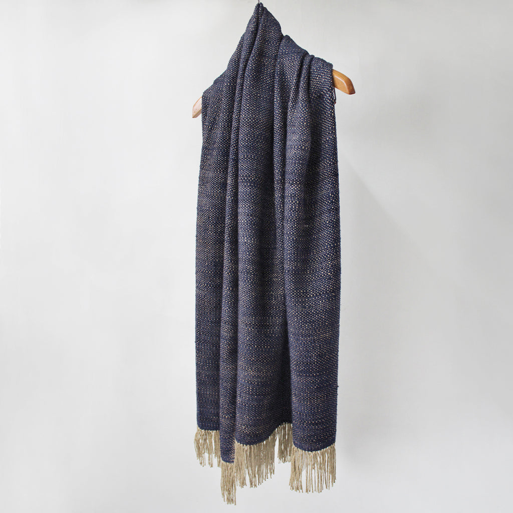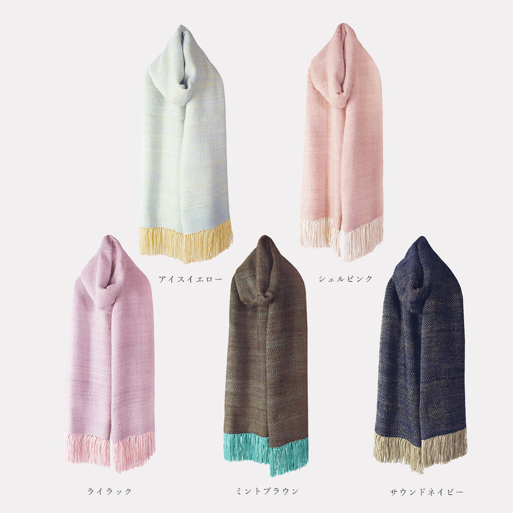 そして、このショールは手織り(高機)で丁寧に織られており、それは織り上げた布の風合いの良さが出ています。