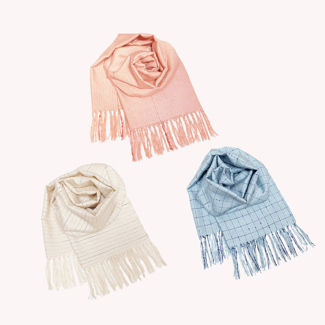 年月とともに風合いが良くなり、まとう方に寄り添うショールとして、生地感を「育てる」ことができます。自分らしく装うファッションとして長くお使いいただけます。